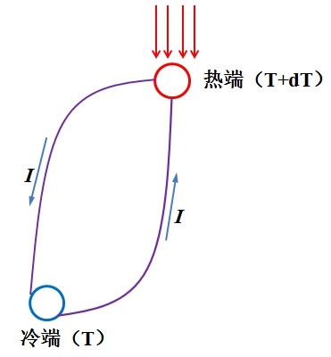 2. 測溫原理:使用熱電偶時(shí),通常利用其中一個(gè)結(jié)點(diǎn)作為測量端(熱端),用于吸收熱輻射而產(chǎn)生“溫升”,而另一結(jié)點(diǎn)作為參考端(冷端),并維持恒溫。下圖為簡單測試原理結(jié)構(gòu)圖。通過檢測電流的大小就可以探測熱輻射的大小,繼而完成測溫。