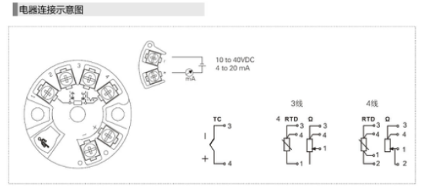 頭部安裝式智能溫度變送器,用于熱電阻(RTD)、熱電偶(TC)、電阻(Ω)、電壓(mV)信號輸入,二線制4~20mA模擬輸出,安裝于傳感器內部(Form B)。